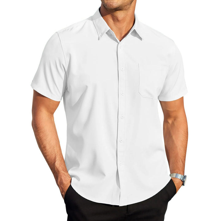 🍁【Design】:These dress shirts for men is featured with regular short sleeve, spread collar, men dress shirts feature a button design with a lapel, pocket, and cuffs, which is fashionable and classic, the men dress shirts is a regular fit and solid color men dress shirts quality button create a casual and stylish look for you.This short sleeve dress shirts for men is indeed the best gift for men