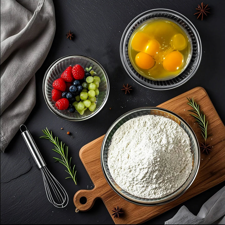 - Crafted from thick, strong glass, these mixing bowls are built to last, offering sturdiness and longevity for your kitchen needs.