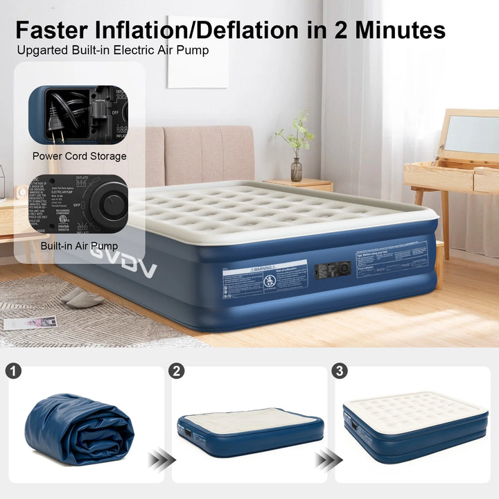 - 🚀 3-Minute Fast Inflation – Built-in electric pump inflates the mattress to full size in just 3 minutes, providing instant comfort without the hassle of manual inflation.