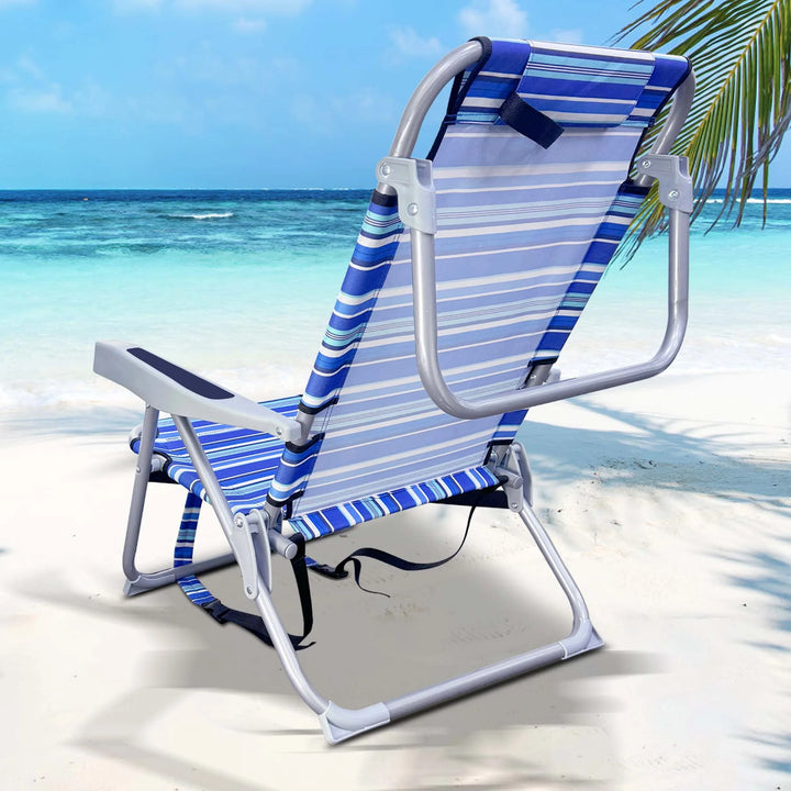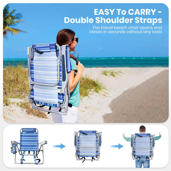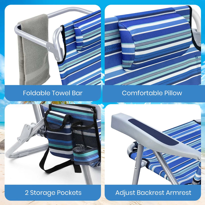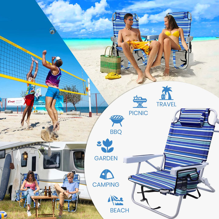 GVDV Backpack Beach Chair for Adults, Portable Folding Beach Chair with Storage Pouch and Pillow, Reclining Chair for Beach, Camp, Outdoor