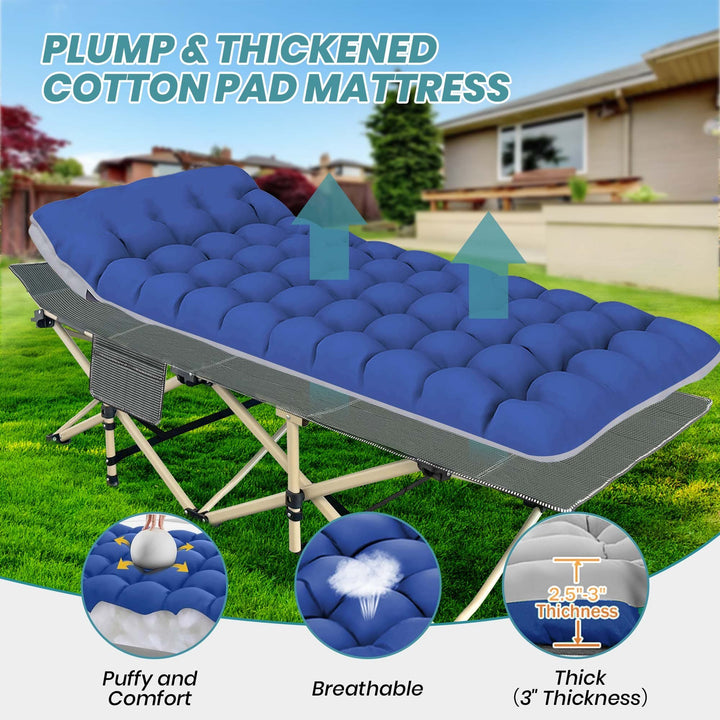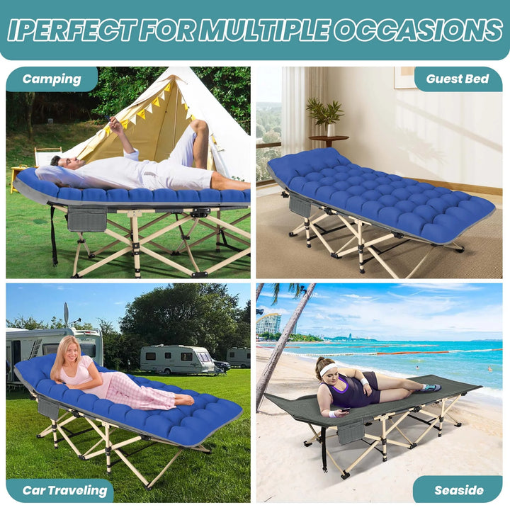 GVDV Folding Camping Cot, Comfort Soft Pad and 1200D Double Layer Oxford Sleeping Cot, Portable Folding Bed Cot for Camp Office Nap Beach Travel