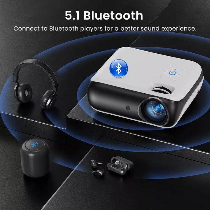 [ Bluetooth 5.1 Technology ] - Connect your Bluetooth projector to Bluetooth speakers for a richer, more powerful sound experience, or pair with headphones for private, immersive viewing without disturbing others. Perfect for both shared movie nights and personal entertainment, this smart projector is also a great Bluetooth projector for iPhone users