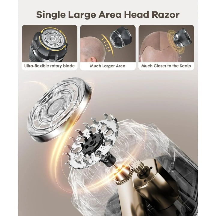 Floating Shaving Head: The upgraded floating shaving system is ergonomically designed for maximum comfort.The shaver adapts to the contours of heads, faces, and necks in all directions, ensuring a smooth, efficient, and relaxing shaving experience