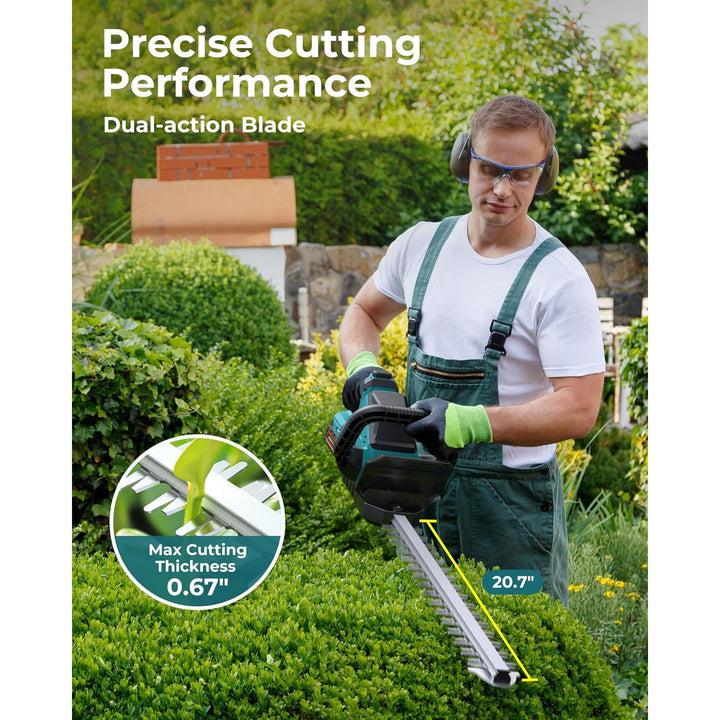 - Durable Blades: Featuring a 20.67-inch blade made of durable 65Mn steel, this hedge cutter easily cuts through branches up to 2/3 inches thick(Blade gap), delivering sharp, clean cuts every time. Ideal for soft branches up to 1/2'' diameter, trimming thin shoots on hedges, bushes, small trees and ornaments. Hardwood may require specialized tools like pruning shear or mini chainsaw. Please apply liquid oil after use to protect the hedge blade