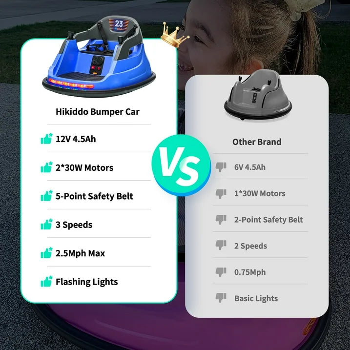 Hikiddo Electric Bumper Car for Kids, 12V Bumper Car Ride on Toys for Toddlers Aged 1.5-5 with Remote, Bluetooth - Blue
