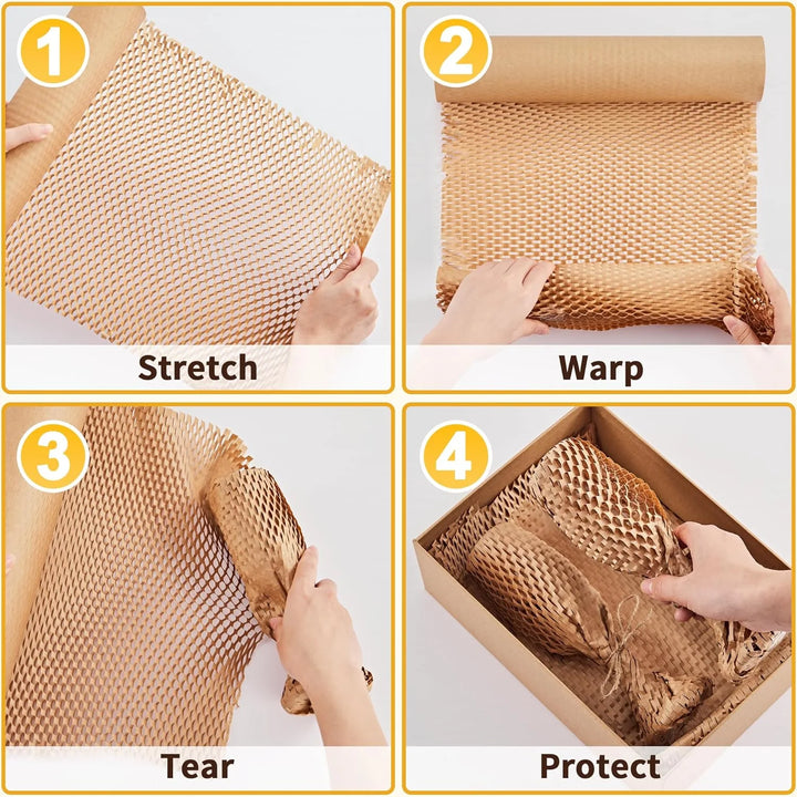 Perfect Packing Paper for Moving/Shipping/Packing When it comes to moving/shipping/packing, our honeycomb paper is the ideal choice for protecting your belongings. The unique honeycomb structure provides a superior level of shock absorption and cushioning, ensuring that your items arrive at their destination in perfect condition. Our honeycomb paper is easy to use, with no need for tape or plastic wrap, making packing a hassle-free experience.