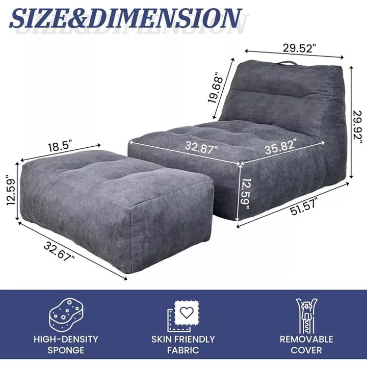 【No-Assembly, Easy to Move】No assembly needed for this bean bag chair with ottoman—just unpack and relax! Its lightweight build lets you easily move it from the living room to the balcony or any home corner, so you can create your ideal lounging spot.