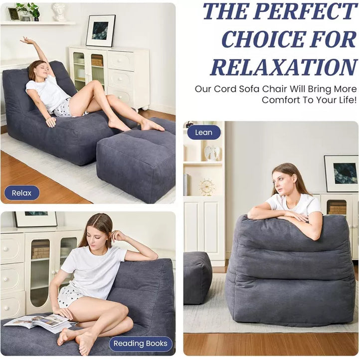 【Premium Materials & Easy to Maintain】Crafted from skin-friendly, stain-resistant corduroy, this comfy bean bag sofa keeps your bedroom or living space looking new with little effort. A simple wipe cleans it up, easily resisting daily stains and pet scratches.