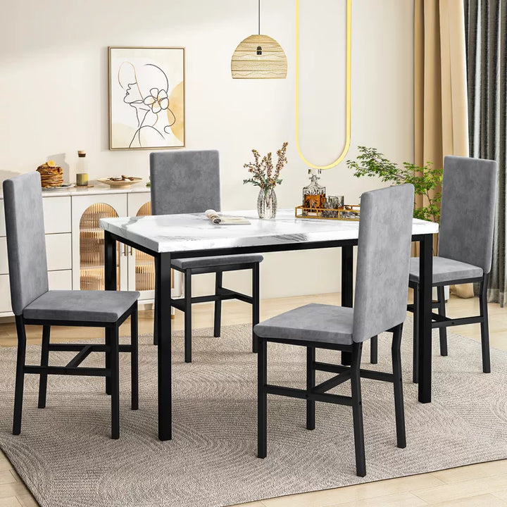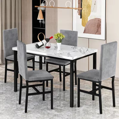 Hooseng Modern Style 5-Piece Dining Room Table And Chairs Set, Faux Marble MDF Table Top and Velvet Upholstered Chairs Dining Table Set for 4