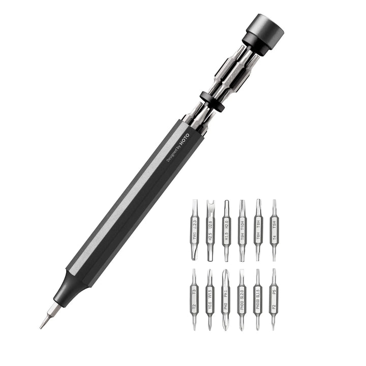 HOTO 24-in-1 Precision Screwdriver Pen winner of the GOOD DESIGN Award 2021, it’s a lightweight toolkit with 12 double-ended screw bits that fit in the size of a pen. This versatile tool can handle almost any screw-driving task in your daily life. Its sleek design allows it to fit right in your pocket, ready for use whenever needed. This single device can replace your bulky toolbox, providing a convenient solution for tasks ranging from electronics repair to DIY projects.