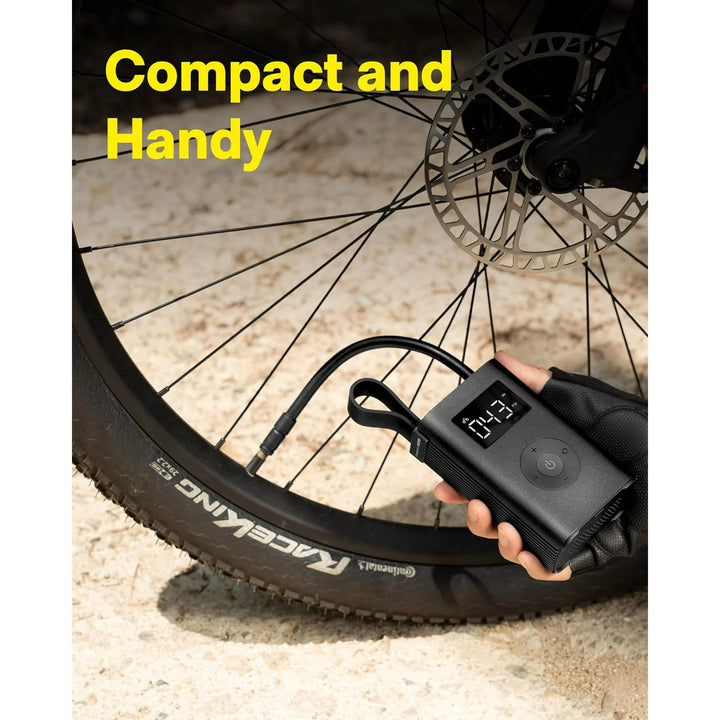 The HOTO Electric Air Pump ADV is a quick, smart, and compact inflation solution ideal for drivers, cyclists, and sports enthusiasts. It delivers up to 150 psi, ensuring quick and accurate inflation for cars, bikes, motorcycle tires, and sports balls in just 2 minutes. Equipped with a high-capacity lithium battery, it can handle up to 10 tire inflations on a single charge. The smart auto-stop feature prevents over-inflation by stopping at the preset pressure. It offers both convenience and precision and is designed with a digital display for clear pressure readings and a quick-release nozzle for hassle-free operation. Its compact design and rugged shockproof case make it easy to carry and durable for any adventure. The built-in emergency LED light with SOS function ensures safety and visibility in low-light conditions. Recharging is simple and efficient via USB-C. With multiple preset inflation modes and a manual option, the HOTO Electric Air Pump is versatile and user-friendly.