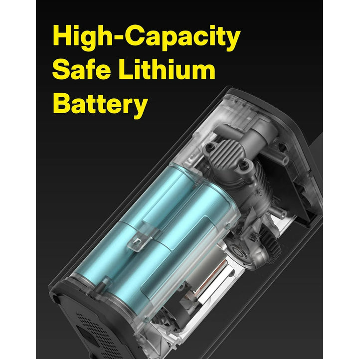 - High-Capacity Safe Lithium Battery: One Charge Inflate Up to 10 Tires (29-35psi).