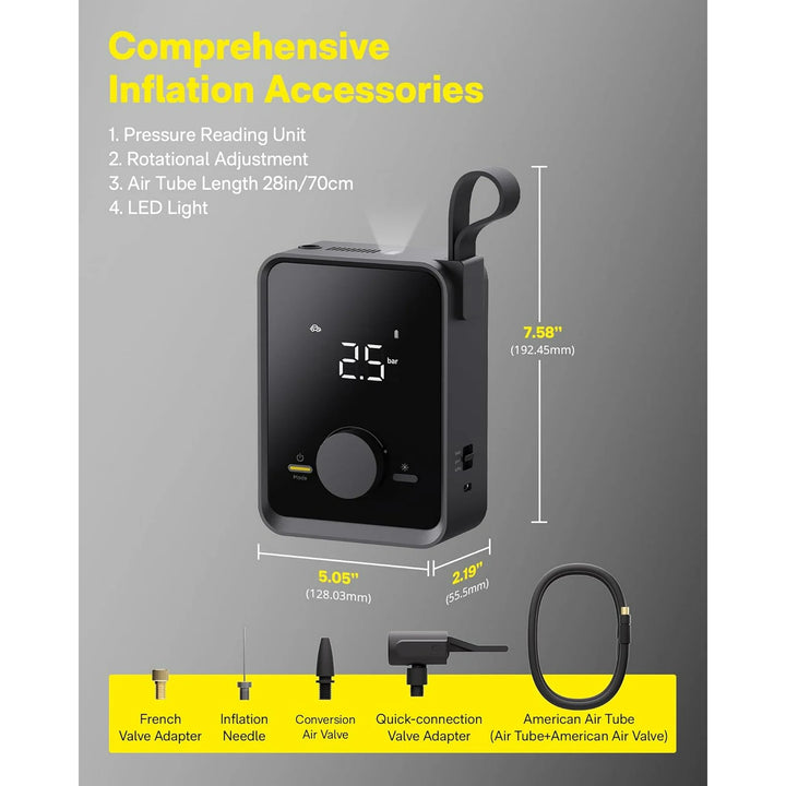 - An ideal gift for car owners, cyclists, and adventurers seeking a compact yet powerful inflation solution.