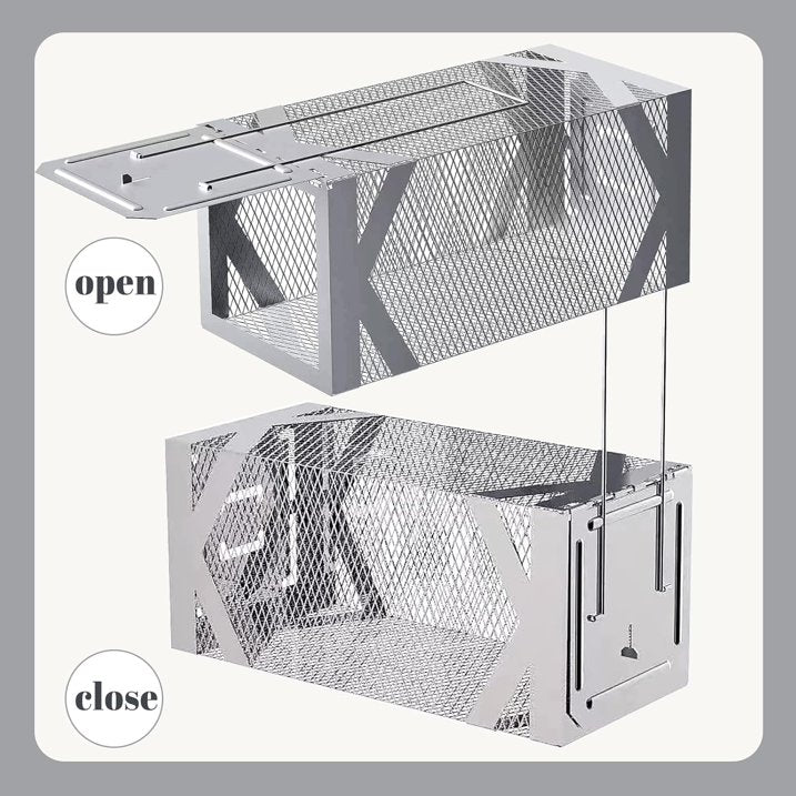 - 【Reusable Rat Traps】 Rat trap cages are not disposable like rat sticky boards, but can be used repeatedly. Usually, bait is placed in the cage to entice rats to enter, after which they can be released at any time, and the bait is placed to continue using.