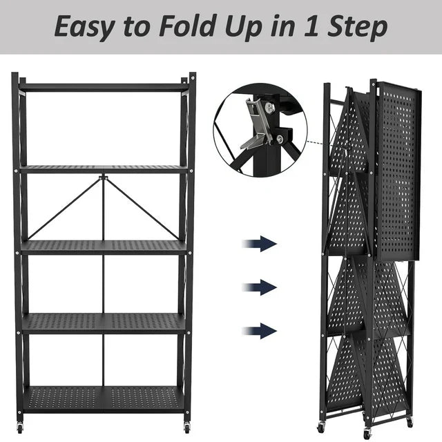 - ✅【 Space-Saving and Efficient 】In just 5 seconds, you can easily fold and store this shelf away. It collapses to a compact width of 4 inches, allowing you to conveniently store it in your pantry, garage, or even between shelves, keeping it out of sight when not in use.