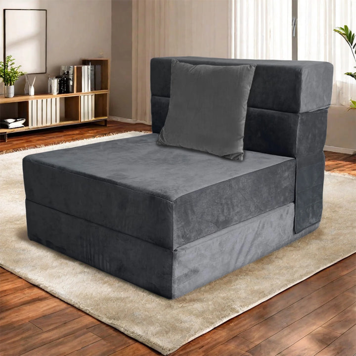 Premium Material and Comfort: Crafted from luxurious grey velvet fabric and high-density memory foam, this folding sofa bed offers an exceptional level of comfort and support. After opening the vacuum packaging, please wait 24-72 hours for the product to bounce back to the normal shape before use, the longer the rebound effect is better.