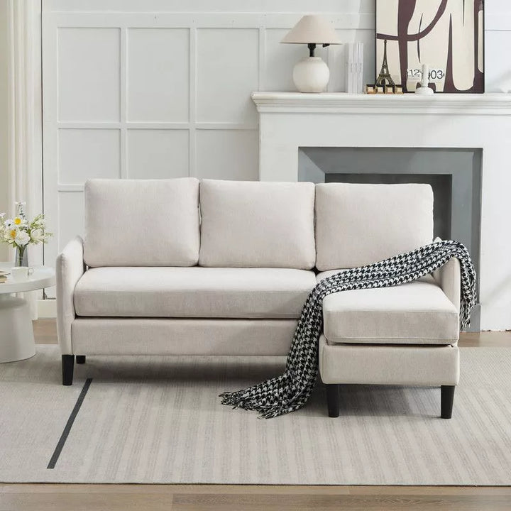 Upgrade your space with this 3-seater L-shaped sectional sofa with chaise, designed for comfort and practicality in smaller rooms. Upholstered in soft linen-look fabric, it offers a modern, textured appearance while remaining durable for everyday use. The compact footprint makes it ideal for apartments, studios, or home offices, while the chaise provides a perfect spot to stretch out and relax. Built with a sturdy frame and supportive cushions, this sectional delivers both style and function for any living space.