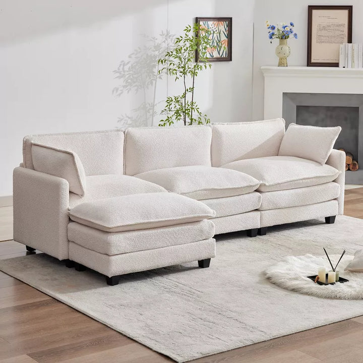 Delivered in 3 Separate Packages: Considering the large volume of product packaging, in order to meet practical needs and facilitate transportation, this 4-seater L-shaped couch will be divided into 3 separate packages for delivery, so they may not arrive at the same time. Package 1:2 single sofas and 2 throw pillows. Package 2:1 single sofa and 1 ottoman. Package 3: left and right armrests for the couch