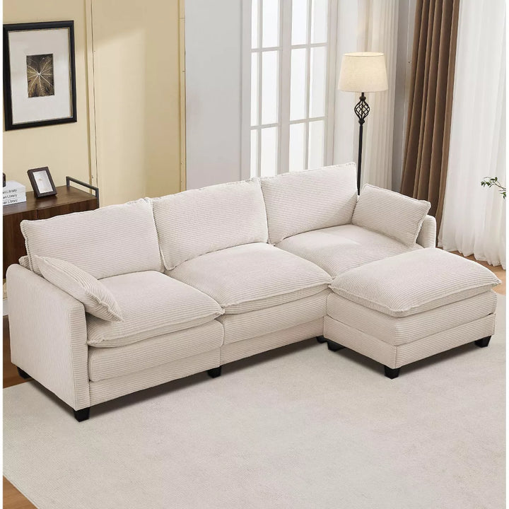 L-Shaped Design for Modern Living - Comfortable 3-seater sectional sofa with movable ottoman for versatile lounging.