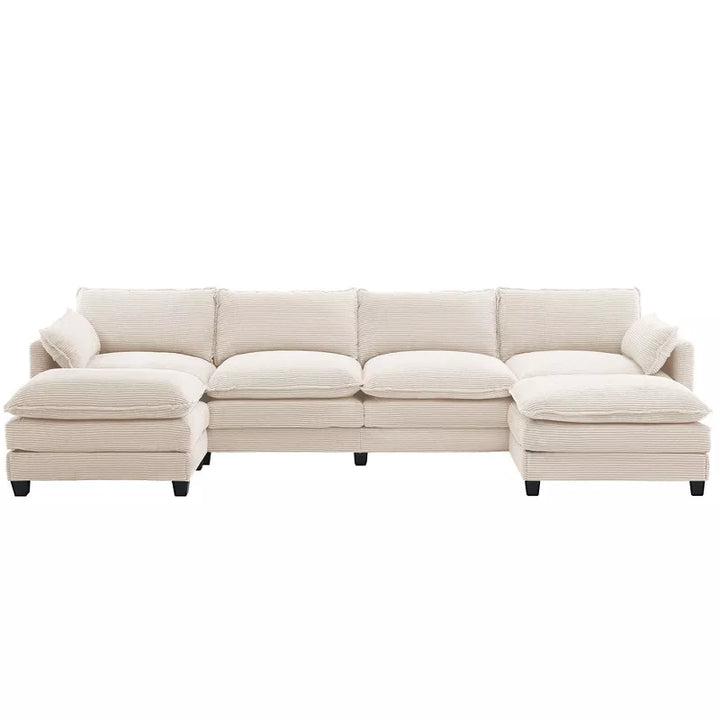 U-Shaped Comfort for Families - Spacious 4-seater corduroy sectional sofa with 2 movable ottomans, perfect for living room gatherings.