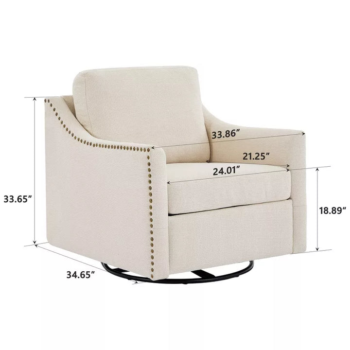 Hyleory Linen Swivel Accent Chair with Studded Trim, Comfortable Upholstery and Smooth 360° Rotation