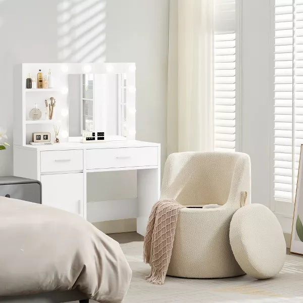 Versatile: Whether you want to create a cozy reading nook, a chic grooming area, or add a practical and stylish piece of furniture to your living space, our Leather Swivel Makeup Chair perfectly meets your needs. No matter what furniture it is paired with, this Makeup Chair for Bedroom will add a personalized style to your space and provide outstanding functionality.