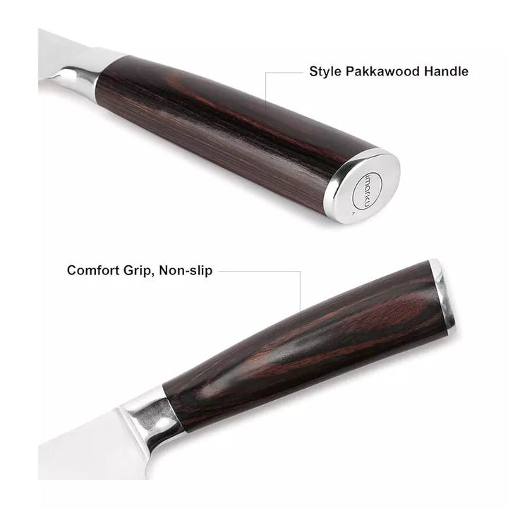 High-carbon Raw Materials: Crafted with high-carbon stainless steel from Germany; our 10 inch bread knife delivers exceptional durability and improved anti-corrosion performance, Enjoy rust-free slicing of bread; cakes; and other foods Superior Serrated Edge: Designed with independent serrated edges, this bread knife offers enhanced cutting ability for soft foods. According to the mechanical test, a serrated bread knife is more suitable for soft foods such as bread and cakes Ergonomic Wood Handle: The shape of the bread knife handle conforms to the ergonomic design which improves the comfort of the grip during actual use. Moreover, it can make user feel easier to cut bread slices; avoiding stuttering; making your kitchen work better. Plus, our bread knife is left-hand friendly Best Gift Choice: Our 10 inch bread knife uses the exquisite gift box as the outer packaging. The box inside uses fine flannel as the raw material to wrap the serrated knife in all directions. Make it looks elegant and beautiful. Present it to your loved ones at Christmas; birthday;Fathers Day Gifts; Thanksgiving or any other special occasion Unmatched After-Sales Support: Our customers' satisfaction is our top priority. Our dedicated after-sales team will respond within twenty four hours to ensure 100% satisfaction. Choose imarku's pro bread knife with confidence