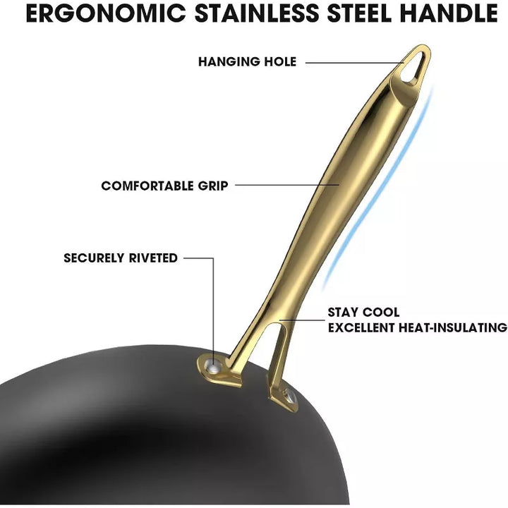 INNOVATIVE LONG LASTING NON STICK FRYING PANS: imarku frying pan combines the advantages of the cast iron pan and nonstick frying pan, making cooking easier! While maintaining long-lasting nonstick, the skillets deliver the absolute benefits of cast iron pans, maintaining even heat distribution and excellent heat retention. Perfect for home chefs and culinary professionals HONEYCOMB NONSTICK COOKING SURFACE: imarku frying pans use honeycomb nonstick technology and an etching process to etch a precise concave-convex texture on the bottom of the pans, effectively preventing the food from sticking and ensuring the oil droplets are evenly distributed. This minimizes oil use and helps reduce fat intake, better keeping the original delicious taste of the ingredients UPGRADE EXPERIENCE FRYING PANS NONSTICK WITH LID: Tempered glass lid with a vent hole can maintain high visibility and prevent the soup from spilling. The thin-walled and thick-bottomed design of the pan gives you a lighter, easier cooking experience than other traditional cast iron pans. Easy to clean, Simply rinse with water and mild detergent to rinse off quickly after you're done cooking COMFORTABLE ERGONOMICS HANDLE: The non stick frying pans adopt an ergonomically stainless steel double riveted handle, which is safe, stable, durable, stylish, comfortable to grip and heat resistant to keep cool when used on the stovetop, no need to worry about burns. The hanging hole design made the frying pan set convenient to hang up HIGH COMPATIBILITY: The frying pans are suitable for a variety of cooking methods, including deep-frying, boiling, stirring and grilling. Work on all cooktops including Halogen Stoves, Gas, Ceramic, Oven and Electric Stoves, perfect for all your culinary needs GREAT GIFT AND TRUSTWORTHY: imarku is dedicated to enhancing your user experience. If you encounter any problems with the product, we provide great after-sales service to ensure long-lasting use. Our nonstick cast iron skillets included 10/12-inch frying pans, are under strict quality control and beautifully packaged, it is a perfect home decoration gift and father's day gifts