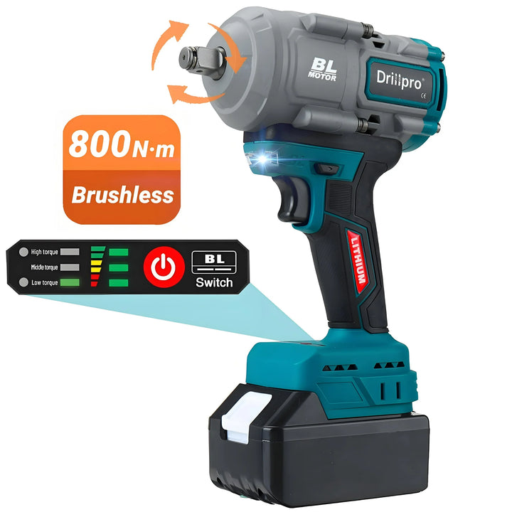 With an impressive torque of 800N.m, this DRILLPRO cordless impact wrench is one of the most powerful battery-operated tools on the market, effortlessly handling a range of tasks from removing car tires to assembling large furniture. Its efficient brushless motor not only enhances work efficiency but also extends its lifespan, easily tackling even the most demanding jobs. This brushless impact wrench ensures you never have to worry about insufficient power; every operation showcases your professionalism.