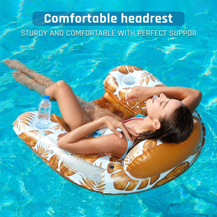 Pool Lounge Chair with Cup Holders - The inflatable float lounger is equipped with built-in cup holders. You can always have your beverage as you enjoy time on the floater.