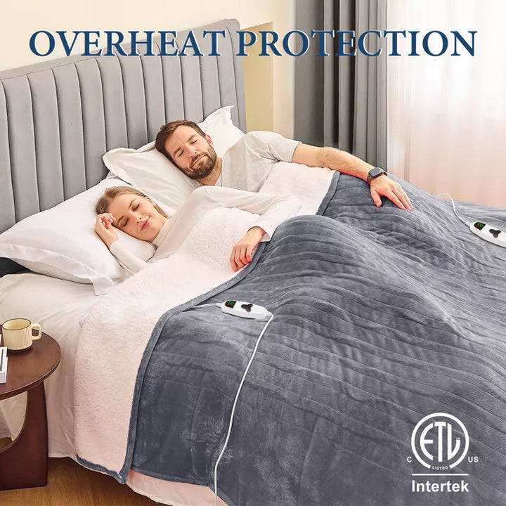 Inhand Heated Blanket Dual Control Electric Heating Blanket Auto-Off 10 Heat Level Over-Heat Protection Flannel ETL Certified