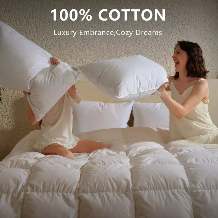 Breathable 100% Cotton Shell - Tightly woven fabric prevents feather leakage while allowing optimal airflow for cool, comfortable sleep.