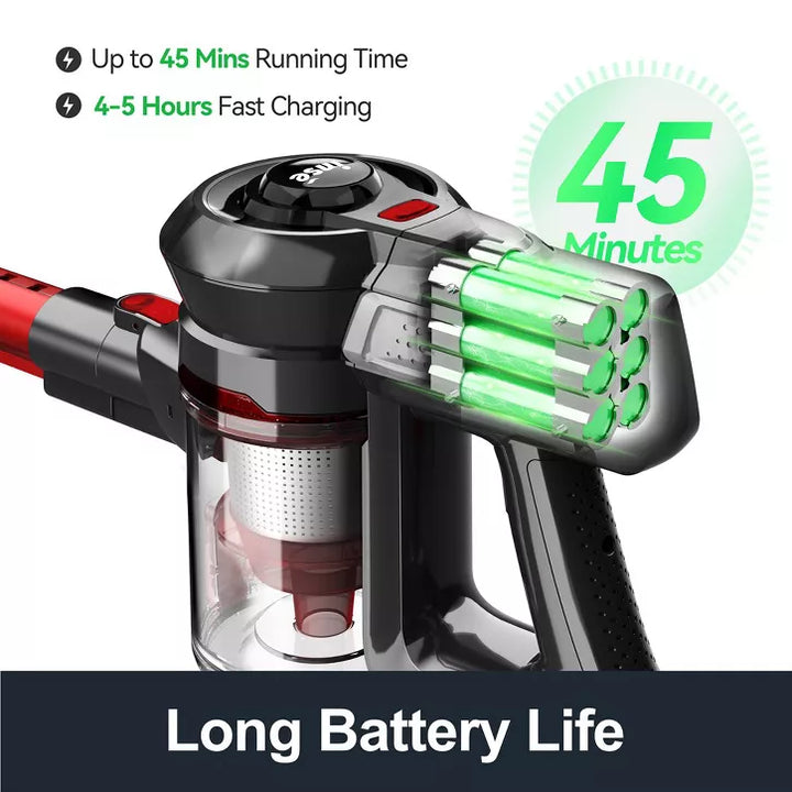 【Sufficient Power】Powerful 160W motor with 12Kpa suction and two power settings to meet different cleaning needs. The high setting is for quick and deep cleaning, and the low setting is for extended runtime when the battery is low. Quiet operation at 65db for a peaceful cleaning experience.