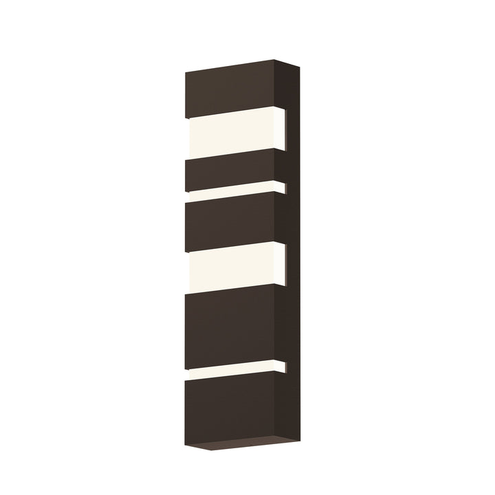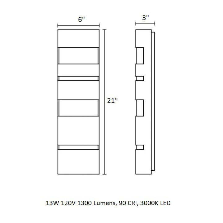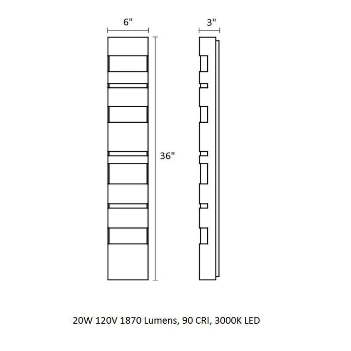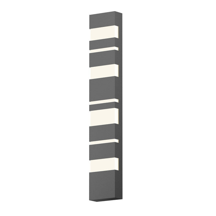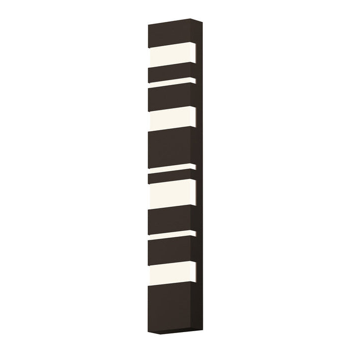 A welcoming rhythm of thick and thin LED-lit spaces, cut into this crisp-edged aluminum and acrylic rectangular column, brings a dramatic, jazz-like architectural feel to an exterior or interior wall.