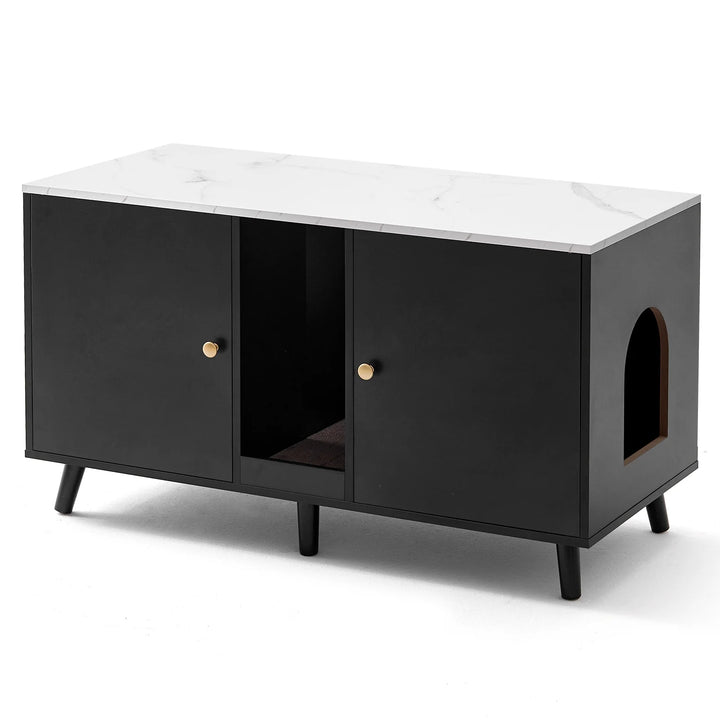 【3-in-1 Cabinet】 - It can be used as a cat litter box enclosure for 2cats, or as a TV stand for a 50-inch television, also as a coffee table when it removes the wooden legs.