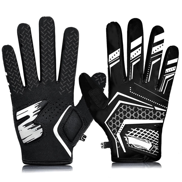 The five-finger silicone anti-slip particles increase friction, making it easier to hold onto objects like a stick. The BSR shock-absorbing palm rest provides enhanced comfort during use, even during intense activities, and protects the palm when hitting the ball. The wrist buckle Velcro design allows for adjustable tightness, and the new printed pattern on the back of the palm adds a fashionable touch. Additionally, the anti-lost buckle design ensures that the gloves won't be easily lost.