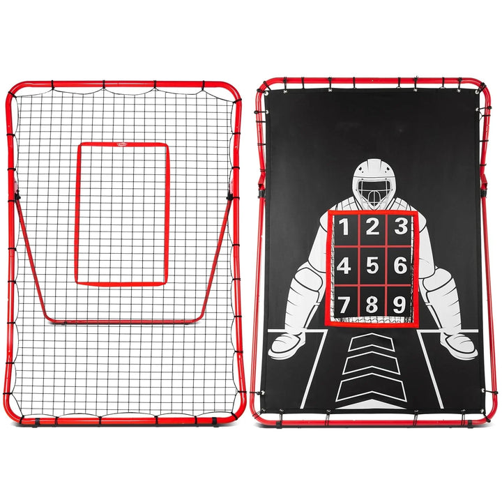 - 【Adjustable Angles,Improve Skills】Pitch back baseball rebounder uses a new adjustment system "Pull and Lock", that allows you to easily adjust 5 angles, making you easy to switch between grounder, line drive, and fly ball settings. Quickly improve your throwing, catching,pitching, fielding and hitting reaction speed.