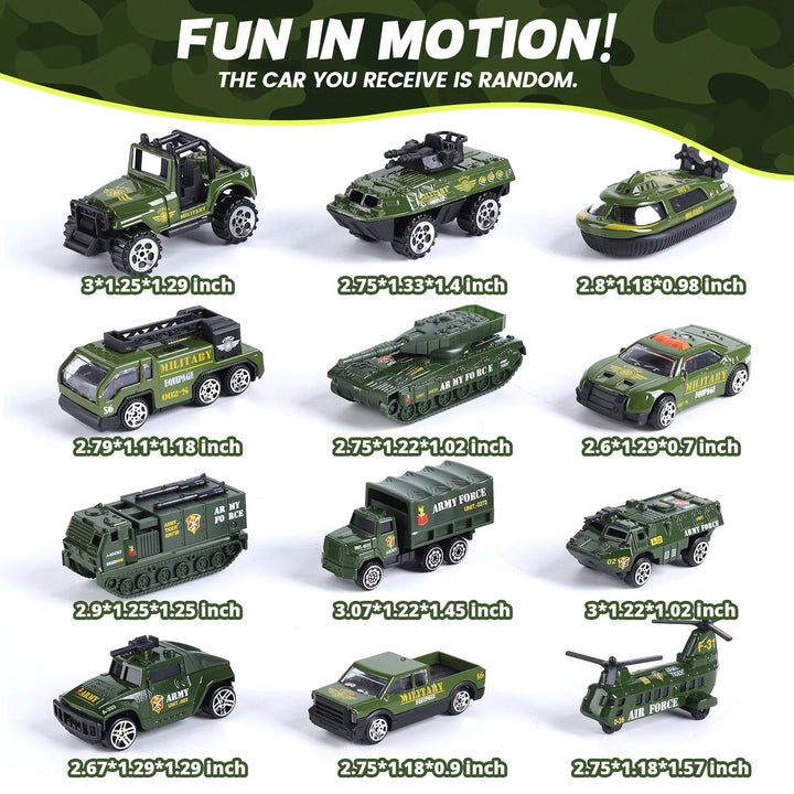 - 【Have Fun】Each Military Army Truck Is In Unique Design And Perfectly Fit In Kids' Hands And Pockets. With Only Some Sand Or Grass, Your Children Can Create Their Own Military Battle Base.