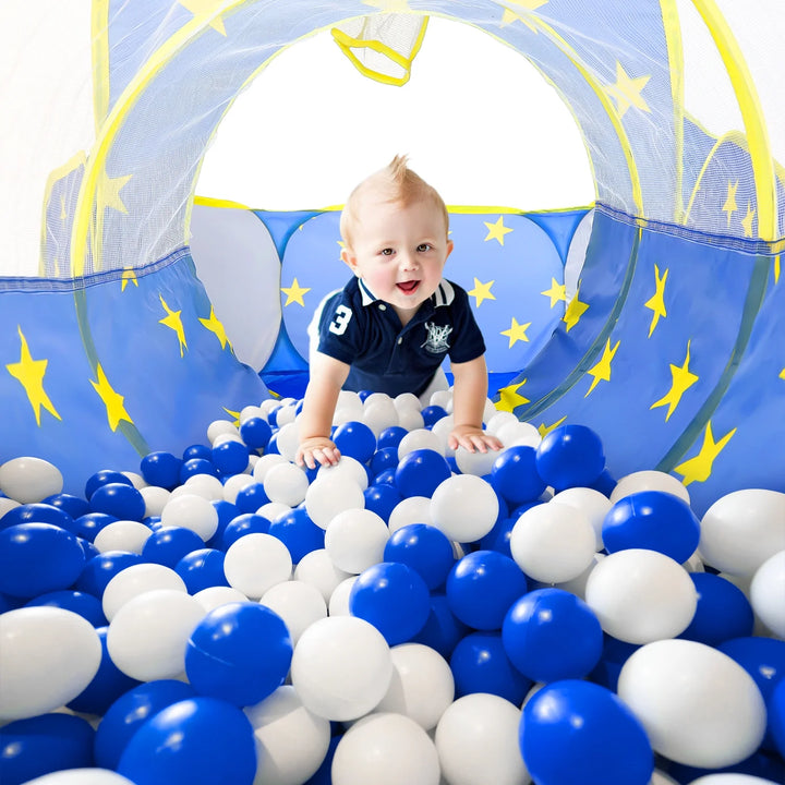 - 【Unlimited Fun for Children】 The 3 in 1 connection design between the toddler playhouse, toddler tunnel and ball pit brings more fun to children. Hiding, crawling, jumping and retreating in the kid play tent. This 3 in 1 rocket game tent has been given the theme of a space station. The tent acts as a rocket ship, transporting you through the tunnel to the game and entertainment place!