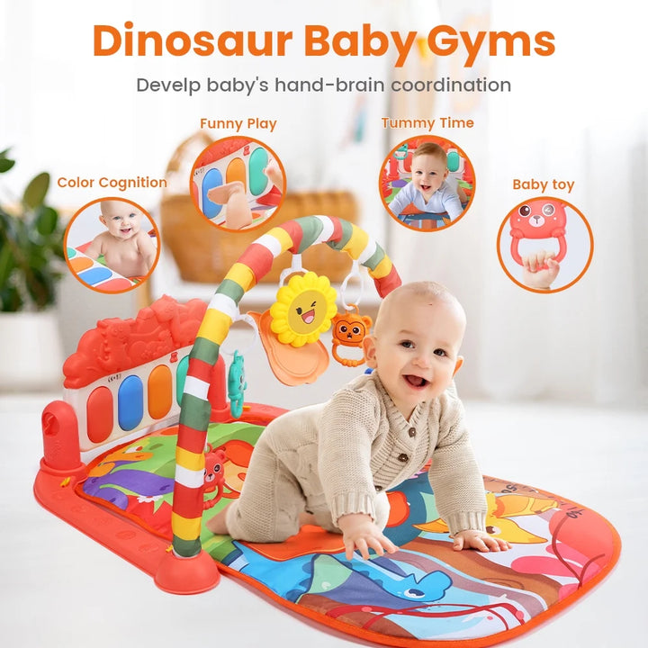 JoyStone Baby Activity Gyms Play Mats--Wonderful Musical Activity Center for Baby 0-36 Months JoyStone baby gym provides your child with four different ways to play. While laying & playing, your baby can stare above at a toy arch with bright and funny activity toys. The Kicking and Playing Piano Gym is the best choice for cultivating baby's musical talent. With feet kicking the piano key and hands touching the bell pendant, the piano gym greatly promotes muscle development of arm and leg. Multiple pendant, attract the baby to grasp, they can be removed to play, exercise children's auditory, tactile, visual sensation, promote baby's sensory development. Piano music can accompany the baby into dreamland. This Playing Gym uses edible safety materials, non-toxic, harmless to the baby. Detachable and washable cushion provides the baby with clean environment,Clear pattern, and it won't fade.