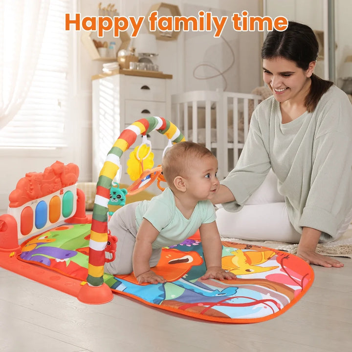 - 【Great For Range of Ages Baby】This piano playmat gym for infants is not only great for tummy time, but also keeps up with their growing babies. Suitable for a wide range of ages and development stages, Your 0-6 months baby can either lie on mat and play with hanging toys from the arch, or enjoy tummy time and explore the colorful mat when they are 9+ months.