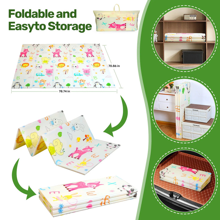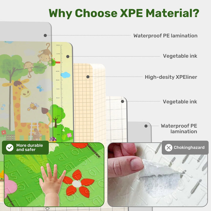 - 【Superior Quality XPE Material】Our baby play mat is made of BPA free XPE material. The cute patterns on playmat are printed with vegetable oil ink. The product is characterized by the following features; BPA free, non-toxic, no-fading, no chemical odor, comfortable and safe for baby crawling. This is a toddler-friendly mat that guarantees the safety of your baby.