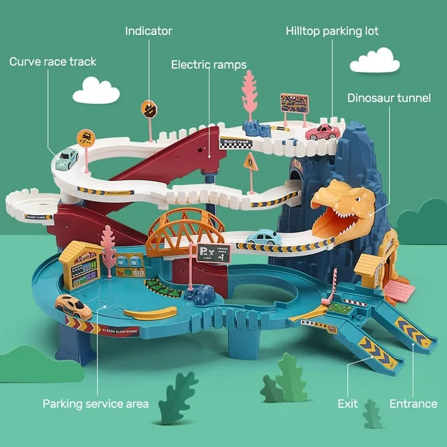 Dinosaur Tunnel: Vivid dinosaur shape design, the mini car can go through the dinosaur tunnel, let's take a dinosaur tunnel adventure together.