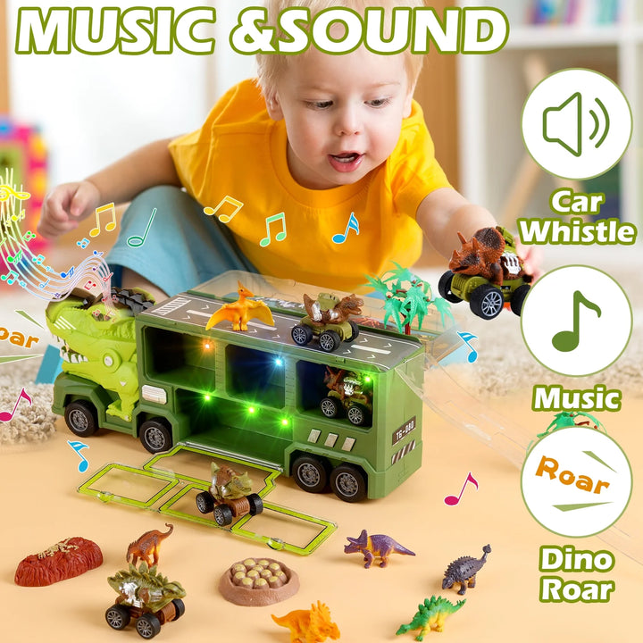 - 【Best Gift For Your Child】This dinosaur truck set is an exquisite gift for Christmas,New Year,holiday, Birthday and other special occasions. Great dinosaur toys for 3-7 year old!hristmas, school prize, or New Year's gift.