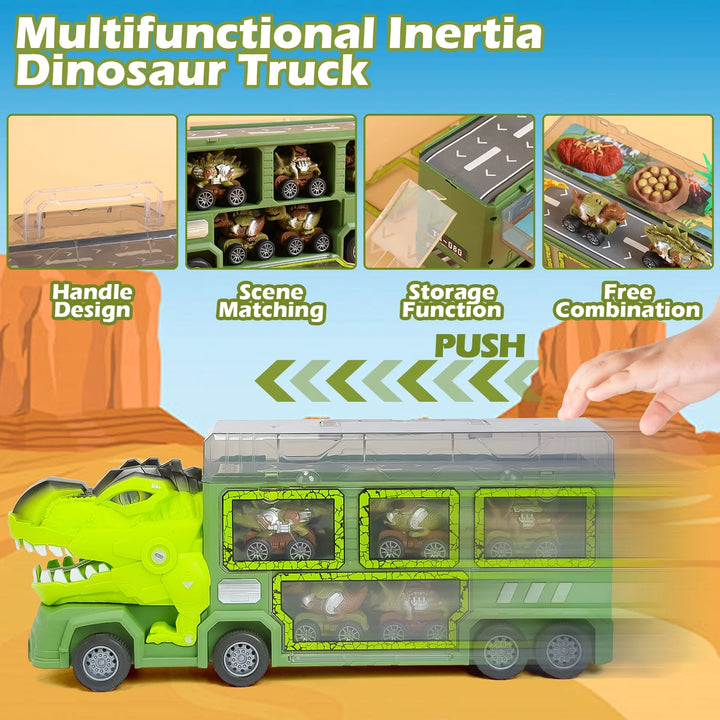 - 【Easily Push Back Dinosaur Truck】The transport carrier truck does not need batteries, just push, can slide a long distance, it is specially designed for toddlers to easily operated.