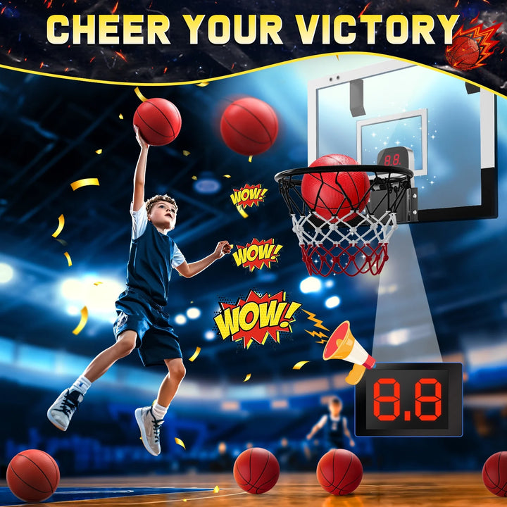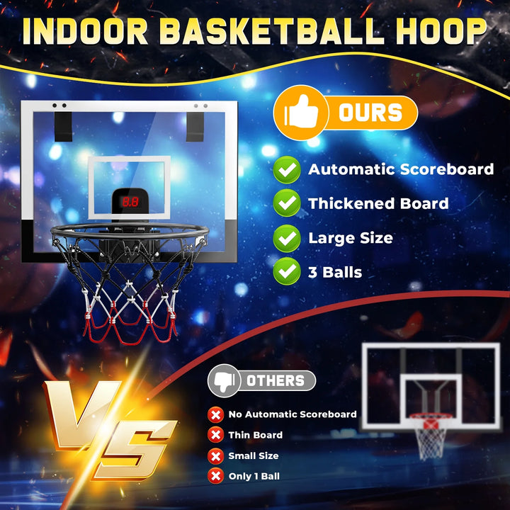 JoyStone Indoor Basketball Hoop Set with 3 Balls, Pro Mini Basketball Hoop for Door with Electronic Scoreboard for Kids & Adults