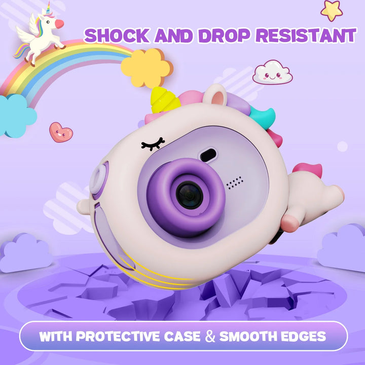 - 【Safety and Drop Protection】This toy camera for toddlers is made of non-toxic, reusable silicone material, BPA and radiation-free, and comes with a cartoon-style case of soft rubber to protect the mini camera from impact. And also specially designed with a durable lanyard, so kids can easily hang it around their neck and record every precious moment!