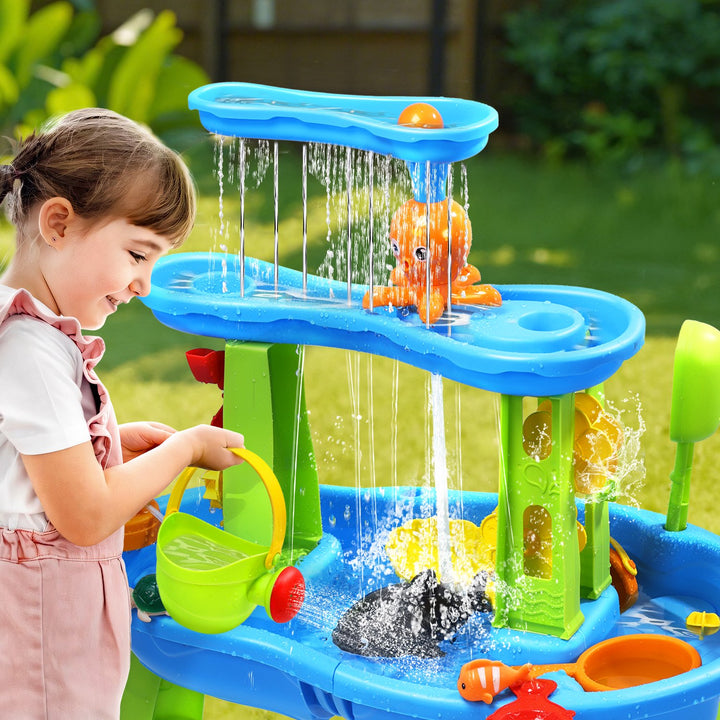 JoyStone Kids Sand Water Table for Beach, 3-Tier Water Activity Tables with Water Pump, Activity Sensory Play Table Toys for Toddlers, Summer Gift Toys for Outside Backyard for Kids