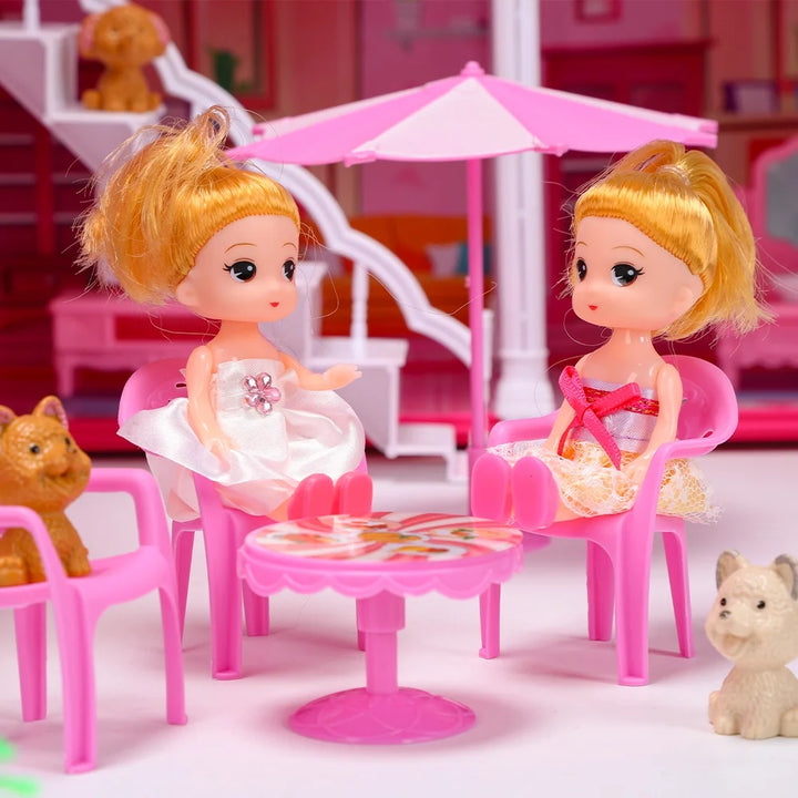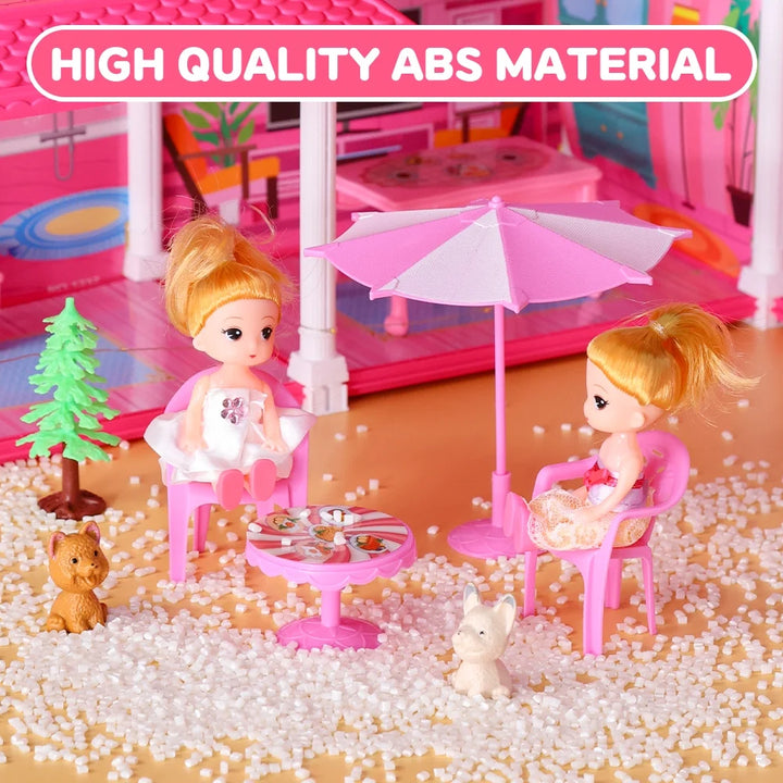 - Dreamy Dollhouse - Features 10 different rooms and a large courtyard, providing endless fun for kids. Includes 2 cute dolls and 4 pets, along with a slide and stairs