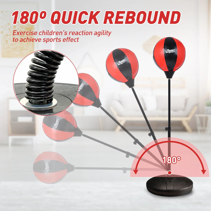 - High Quality: The punching bag and gloves are made of high-quality comfortable and durable PU leather. The glove size is 9 x 4.3 inches and it perfectly fits the hands of kids aged 5-9. The package weight is about 2.72lb.The boxing bag also has a sturdy spring which enables it to bounce back and forth in all directions. Due to its durable nature, this punching bag can withstand repeated punches from a child.